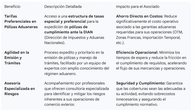 Gracias a la alianza estratégica entre ADICOMEX y JLC Seguros, los asociados pueden acceder a condiciones preferenciales diseñadas específicamente para optimizar sus costos y facilitar sus operaciones de comercio exterior: