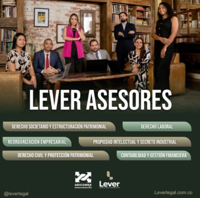 Estimados, En la Asociación de Comercio Exterior – Adicomex, seguimos consolidando alianzas estratégicas con firmas especializadas para ofrecer beneficios exclusivos que fortalezcan el crecimiento y la seguridad jurídica de nuestros afiliados. Nos complace presentarle nuestra alianza con Lever Asesores, una firma legal y empresarial conformada por un equipo de expertos en derecho corporativo, laboral, civil,