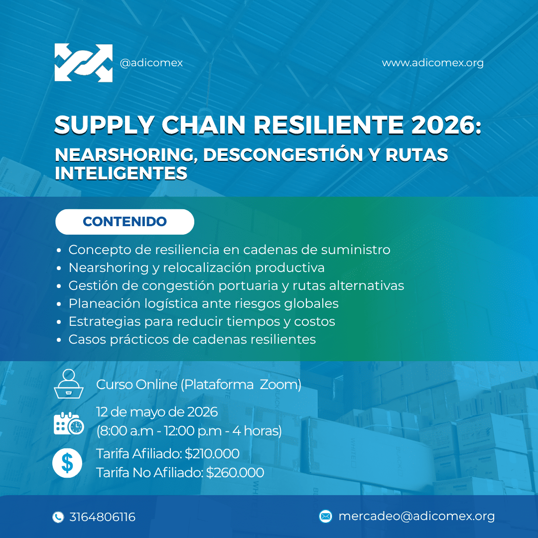 Fortalece tu estrategia logística y prepárate para los nuevos retos del comercio internacional. En este curso conocerás cómo construir cadenas de suministro más resilientes, aprovechar el nearshoring, gestionar congestión portuaria y diseñar rutas logísticas más eficientes para reducir tiempos y costos.
